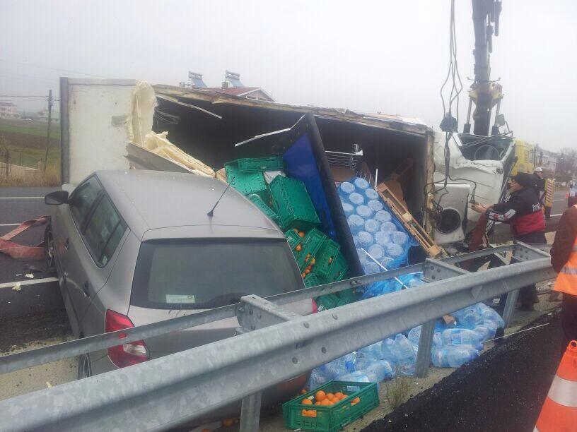 Kamyon ve otomobilin görenleri dehşete düşürecek şekilde iç içe geçip iki şoförün birden kamyonun içinden sağ çıkışı? Evet otomobil sürücüsü kamyonun içinden çıktı!!